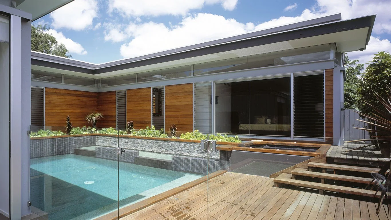 The pool design is visually and audibly evident throughout the house in varied forms to compliment these intentions.